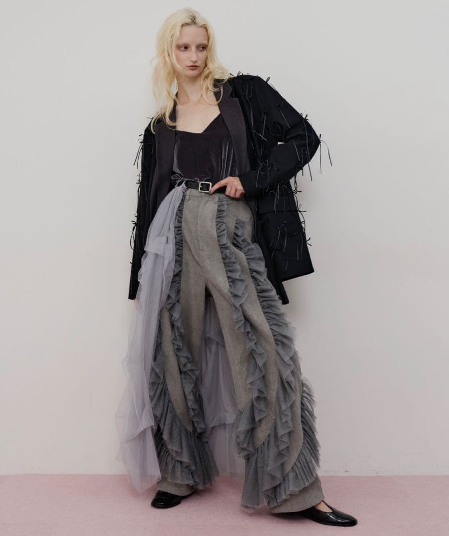 ご覧頂きまして、ありがとうございます。\rリリー ブラウンの【LILY BROWN×MARY QUANT】ベルト付きドットチュールドレス 新品未使用品になります。\r公式ストアにて購入した物で、タグ等全てついたままの状態です。\r2025SS 今季モデル、サイズは1、カラーはブラックです。\r即購入可○\r品番:LWFO245089\r\r【Design/Styling】\rドットチュールを使用した華やかなワンピース。\r上半身にはコルセット風のディテールを施し、スカート部分にはプリーツを掛けることでエレガントなシルエットを演出しています。\r袖にはたっぷりとギャザーを寄せ、程よいボリューム感をプラス。\rフロントにあしらわれた小さめのデイジーボタンが愛らしいアクセントです。\r付属のジャガードロゴ入りニットベルトは取り外し可能で、スタイリングに合わせてアレンジが楽しめます。